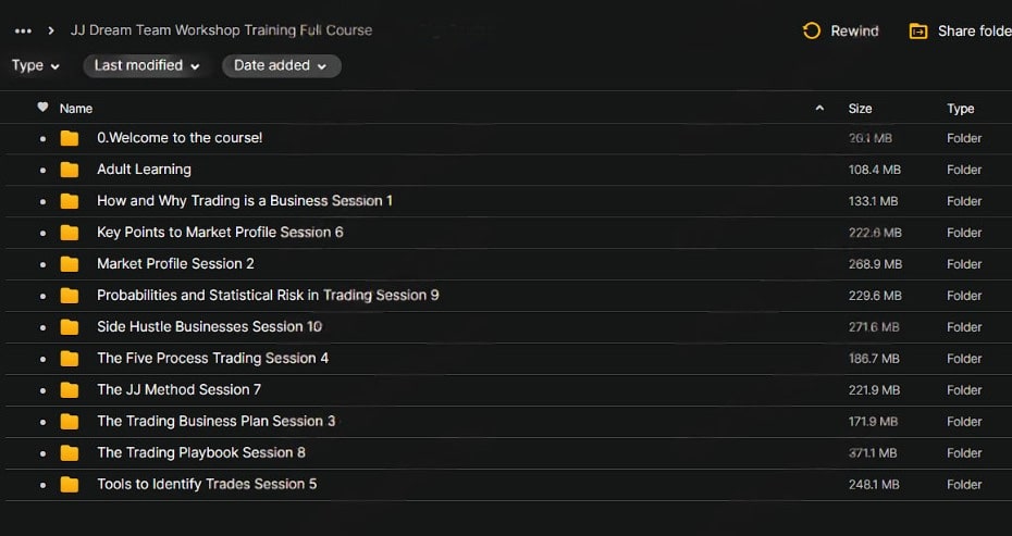 The JJ Dream Team Workshop Training Full Course is organized into ten powerful sessions, each designed to provide you with specific skills and knowledge that are crucial for success in the trading world.