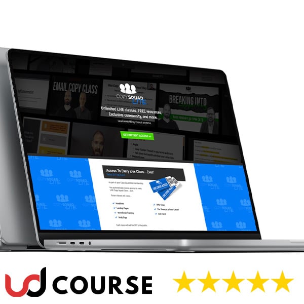 Copy Squad Lite is a comprehensive copywriting course designed to teach you the skills you need to become a top-notch copywriter. As part of your membership, you’ll have access to every LIVE Copy Squad class, including future classes covering headlines, landing pages, email training, body copy, offer copy, the “Beats of a Sales Letter,” and more.